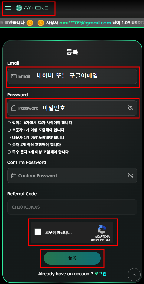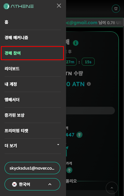 1. 아테네코인 프리세일 경매 참여[해당 링크 클릭]