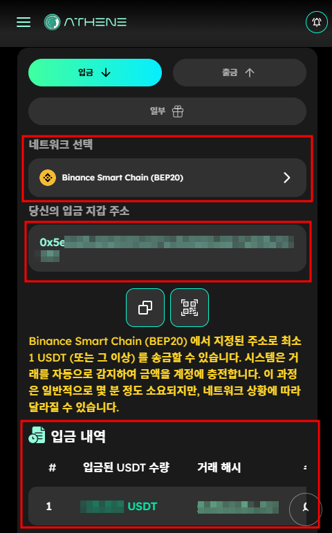 4-1 아테네 경매 참여 웹사이트에서 네트워크 확인 및 입금주소 복사하기