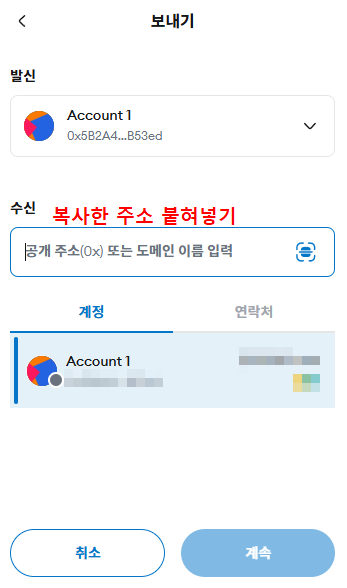 #메타마스크 앱 > BNB 네트워크선택 > 보내기 > 복사한 입금주소 붙여 넣기 > 수량 입력 > 전송