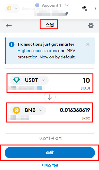 4-3 메타마스크 테더 > BNB 스왑 방법