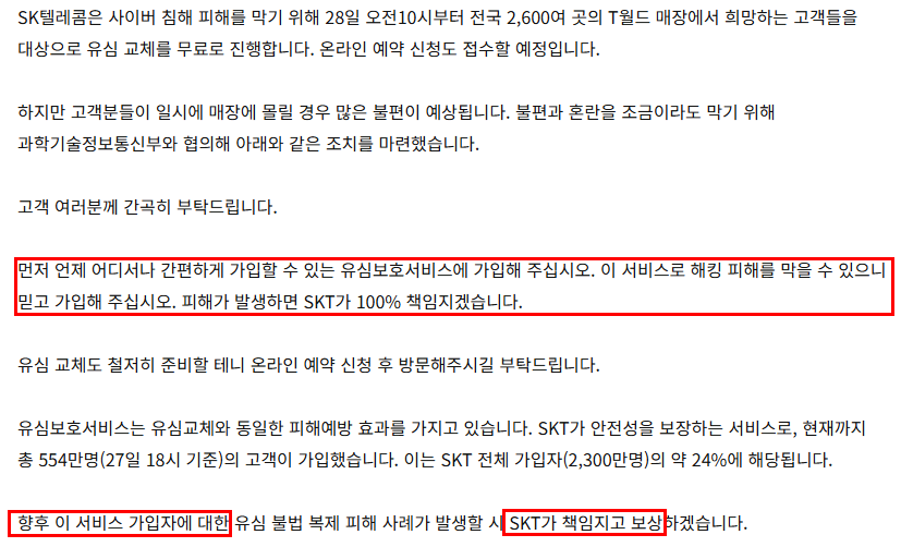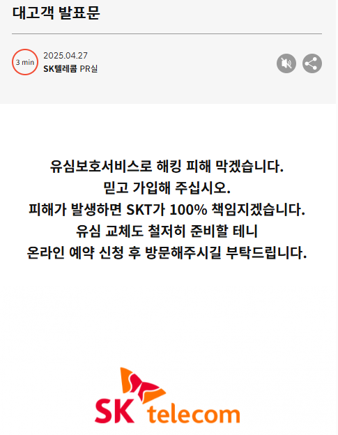 고객 정보 보호조치 발표문 전문 | SK텔레콤 뉴스룸